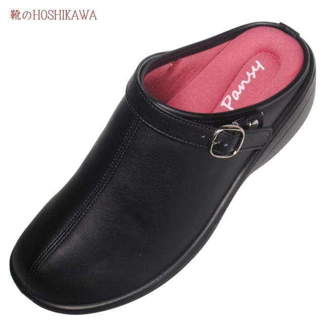 PANSY 6861 S M L LL レディース パンジー サンダル クロッグ ブラック バックバンド ストラップ 前詰まり 秋冬 防寒