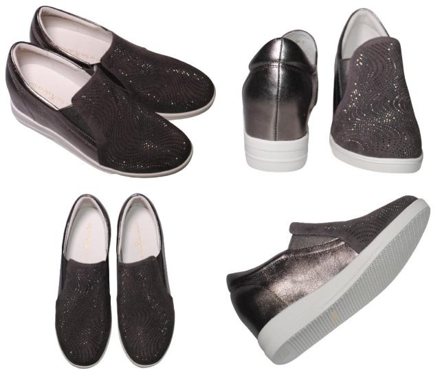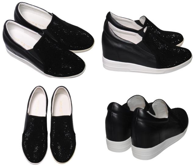 de ocho A de ocho 1699-C68 22cm〜25cm レディース デオチョアデオチョ スリッポン グレー レザースニーカー ラインストーン 厚底 本革