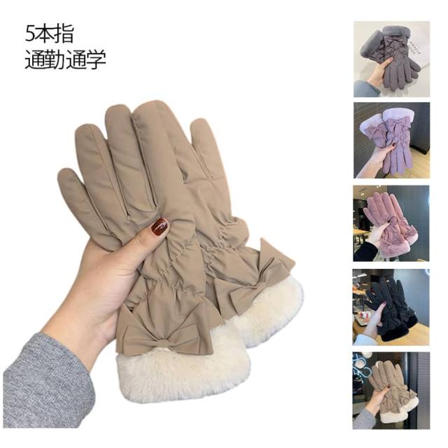おしゃれ 手袋 保温 手袋 かわいい スマホ 寒さ対策 黒 グローブ 手ぶくろ 防寒 防風 秋冬 裏起毛 暖かい 5本指 ファー ボア 手首 ハンドウォーマー スマホ手袋 人差し指 レディース 通勤 通学 普段使い きれいめ 上品 洗える ふわかわ