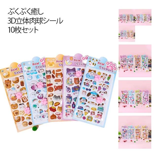 可愛い ル 10枚セット ふわふわプニプニ触感 3D立体肉球 キャラクター ステッカー くま ねこ ご褒美シー 3D 立体 泡ステッカー 3D立体肉球 ふわふわ うさぎ もちもち 手帳 ぷくぷく癒し デコレーション 子供 大人のストレス解消