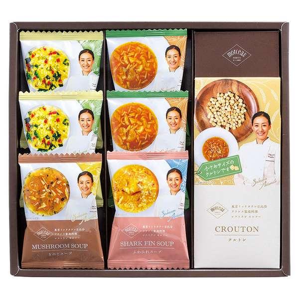 フランス家庭料理レストランmorceau秋元さくら監修のフリーズドライスープギフト。豊かな4種のスープとクルトンのギフトセットです。