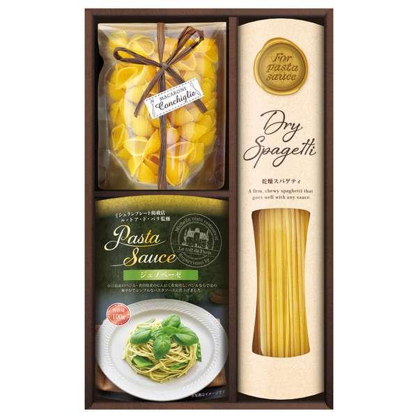 内容/スパゲティ(130g)・ル・トア・ド・パリ監修あえるパスタソース(ジェノベーゼ)(100g)・マカロニ(コンキリエ)(70g)×各1