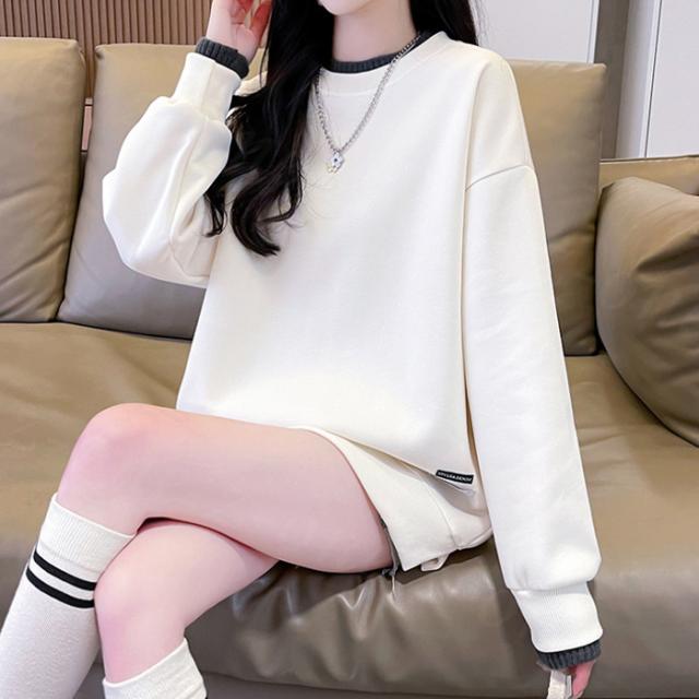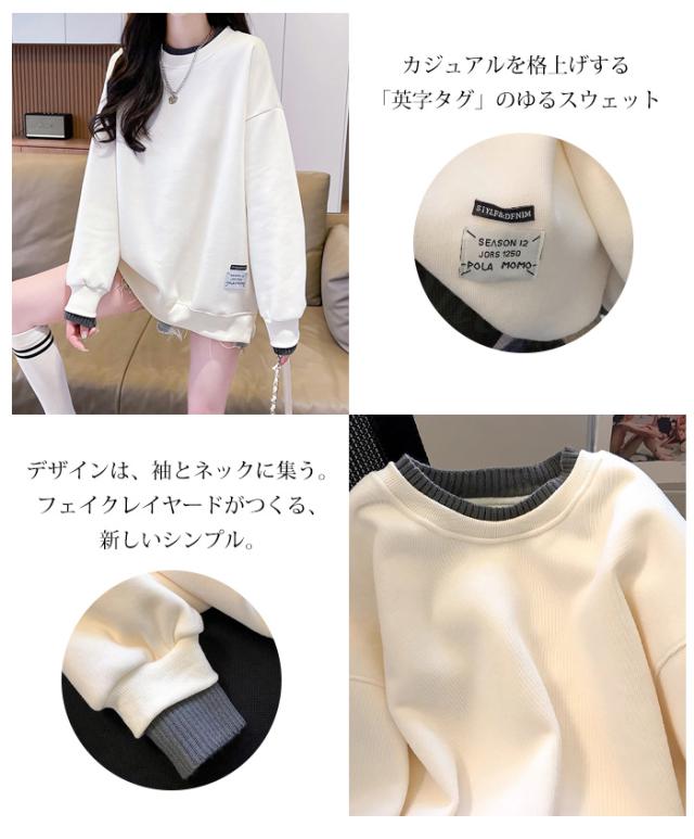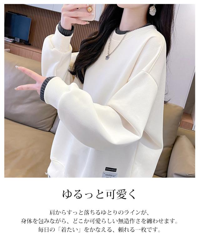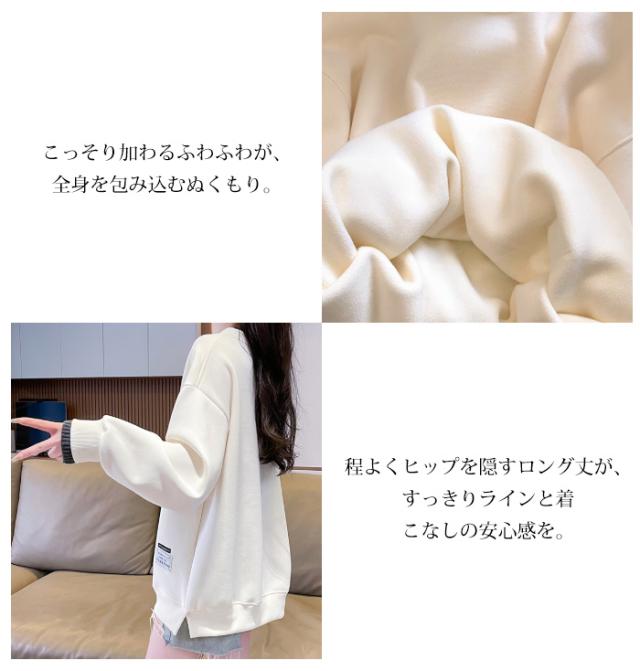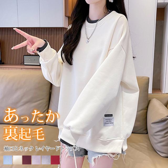 スウェット ゆったり トレーナー 裏起毛 暖か ロング レディース 秋冬 春新作 プルオーバー スリット トップス ロゴ 重ね着風 長袖 トレンド 大きいサイズ ゆったり カジュアル tシャツ ゆったり パーカー 入学式 入園式