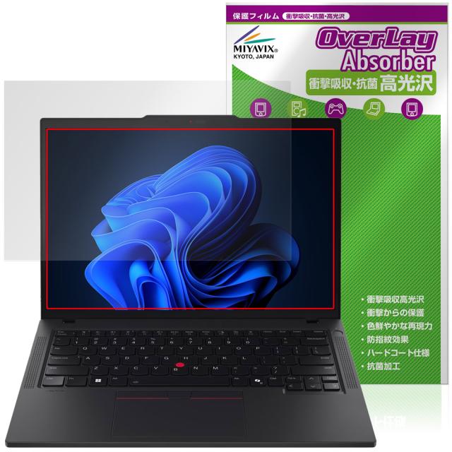 Lenovo ThinkPad T14 Gen 6 14型 保護フィルム OverLay Absorber 高光沢 for レノボ シンクパッド 衝撃吸収 高光沢 ハードコート 抗菌