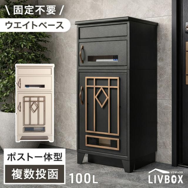 【正午〜P5%還元】 宅配ボックス 押し込み式 複数投函 OK 大容量 100L プッシュキー 一戸建て用 戸建て 宅配box 置き型 置き配 荷物 受け取り ボックス 盗難防止 複数受取 屋外 防水 大型 シンプル おしゃれ LIVBOX リブボックス