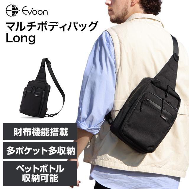 【12個の機能搭載!】 Evoon マルチボディバッグLong 財布機能搭載 左右利き手対応 iPad11インチ収納可能 ペットボトル収納可能 ボディバッグ ショルダーバッグ 斜め掛けバッグ メンズ 男性 多収納 大容量 撥水 防傷 防汚 Dカン ワンショルダー 肩掛け