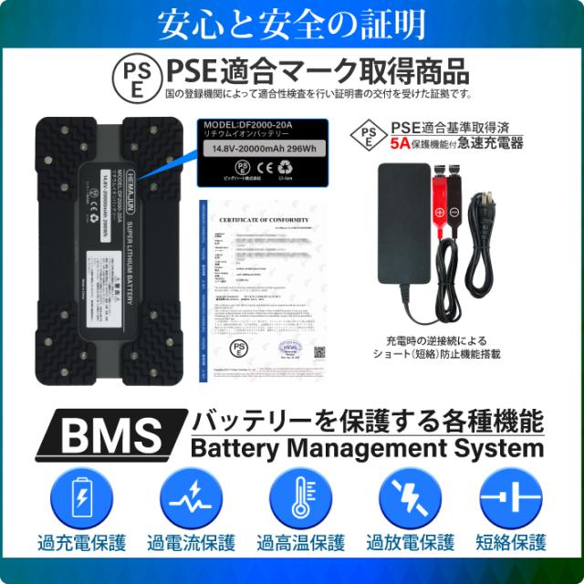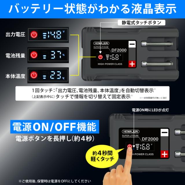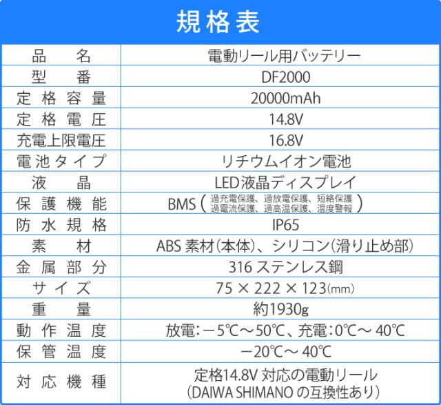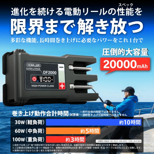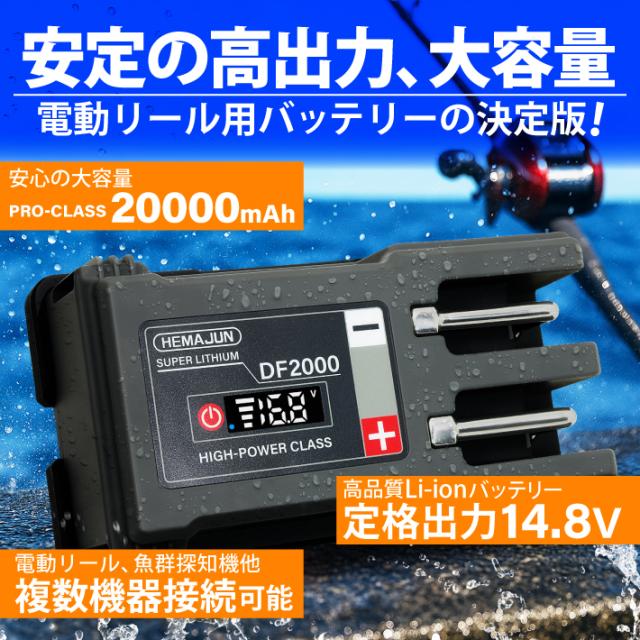 1年保証【公式】HEMAJUN(ヘマジュン) 電動リール用バッテリー DF2000 14.8V 大容量 20000mAh ダイワ シマノ 互換 リチウムイオンバッテリー BMS保護機能 急速充電器付属 釣り用