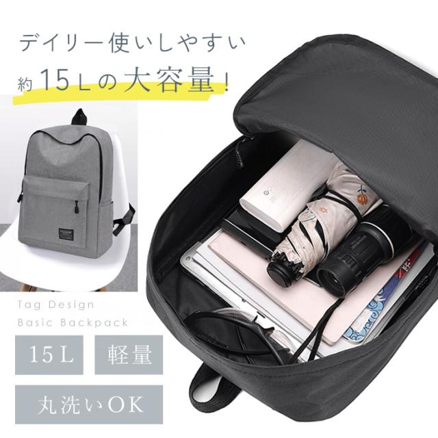 新作 洗える◎タグデザイン15Lベーシックリュックサック レディース メンズ キッズ 子供 リュックサック デイパック バックパック 大きめ 15L A4 軽量 通勤 通学 旅行 スポーツ シンプル おしゃれ 洗濯