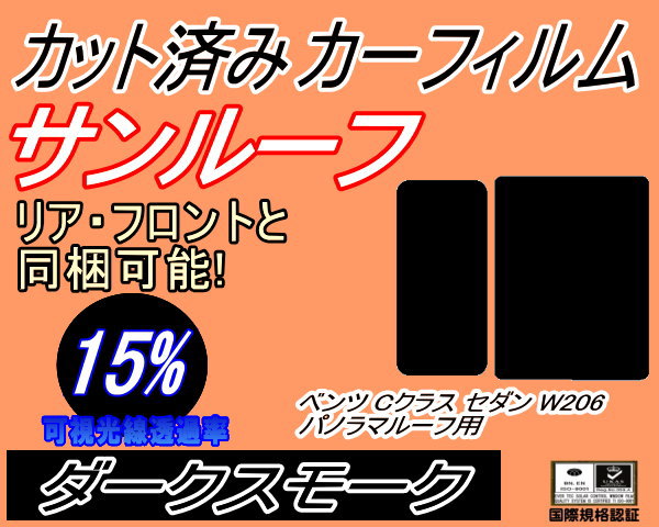 【送料無料】サンルーフ (b) ベンツ Cクラス セダン W206 パノラマルーフ用 (15%) カット済みカーフィルム カット済スモーク スモークフィルム ムーンルーフ ベンツ用