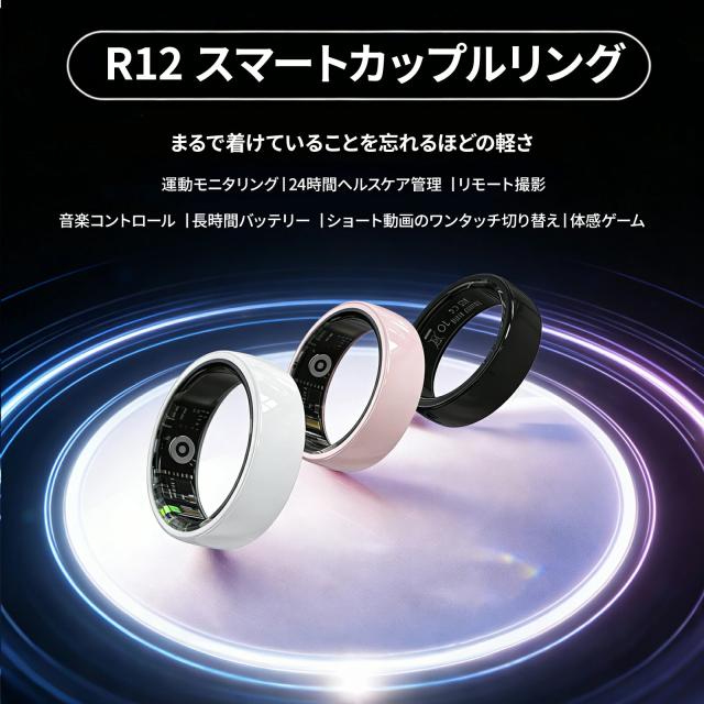 R12 スマートリング カップルリング 健康管理 リモート撮影 女性向けの周期管理機能 活動量計 睡眠記録 運動記録 5ATM防水 スマート指輪 フィットネス指輪 磁気吸着型充電システム 最大7日間使用可能 iPhone/Android 対応 男女兼用 カップル 母の日 ギフト おすすめ