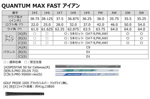 【2月発売予定】【2026モデル】キャロウェイ QUANTUM MAX FAST アイアンセット 5本組(#7〜9、PW、AW) シャフト:N.S.PRO 950GH neo スチール 日本正規品 Callaway
