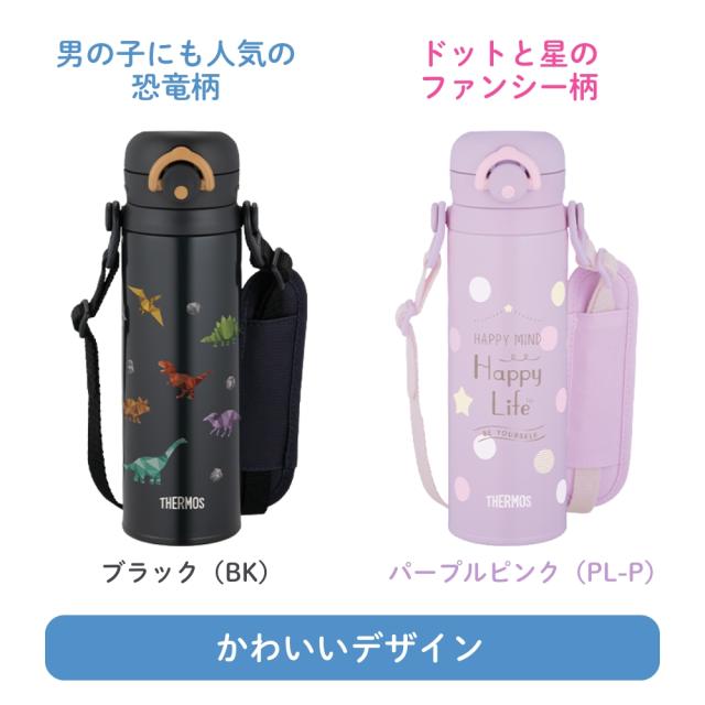 | 商品名: サーモス 真空断熱キッズケータイマグ JPF-500 水筒 500ml 保温 保冷 直飲み ワンタッチ ダイレクト ショルダー付き マグボトル 子供用 キッズ スポーツドリンク対応 通学 遠足 アウトドア 軽量 ステンレス -商品説明- 真空断熱キッズケータイマグ JPF-500 キッズが好きな柄をあしらいました。保温・保冷OK。 ストラップ付きキッズケータイマグ。 肩にやさしいショルダーパッド付き。 ☆ワンタッチ・オープン ワンタッチでオープンするせんユニットは、ロックリング付き。 ☆お手入れ力ンタン 飲み口を外して洗えるので、お手入れが簡単です。 ☆取りはずしできるストラップ付き!(紐の長さを調整するアジャスター2個付き) 滑りにくいショルダーパッドは、肩の負担になりにくく、ズレにくい! ☆お名前スペース付き ☆丸洗いOK ※本体は水中に放置しないでください。 ☆ステンレス製魔法びん構造だから高い保温・保冷力 結露せず、もれません。 ☆スポーツ飲料OK! ※温めたスポーツ飲料は入れないでください。 -特徴・品質- ・サーモス独自の真空断熱構造で高い保温・保冷性能を実現 ・軽量&丈夫なステンレス製で毎日の持ち歩きにも最適 ・滑りにくく肩にやさしいショルダーパッド付きストラップを装備 ・おしゃれで子どもが喜ぶカラーとデザイン展開 ・安心のロック付きワンタッチ開閉システム -仕様- ・品番:JPF-500 ・カラー / JAN ブラック(BK) / 4573603020868 パープルピンク(PL-P) / 4573603020851 ・実容量:0.5L ・保温効力(6時間):68℃以上 ・保冷効力(6時間):10℃以下 ・口径(約):4.0cm ・サイズ:幅 8.5cm ×奥行 7.0cm ×高さ 22.5cm ・重量(約):0.3kg ※ 保温効力とは、室温20℃±2℃において製品に熱湯をせんユニット下端まで満たし、湯温が95℃±1℃のときからせんユニットを付けて縦置きにした状態で6時間放置した場合におけるその湯の温度です。 ※ 保冷効力とは、室温20℃±2℃において製品に4℃以下の水をせんユニット下端まで満たし、水温が4℃±1℃のときからせんユニットを付けて縦置きにした状態で6時間放置した場合におけるその水の温度です。 ※ 実容量とは、せんユニット下端までの容量です。ご使用の際は、取扱説明書をご確認いただき適正な量を入れてください。 -機能- ・ステンレス魔法びん構造で高い保温・保冷性能 ・ワンタッチ開閉で片手でも簡単操作、ロックリング付きで安心 ・取り外し可能なストラップ&長さ調節アジャスター2個付き ・丸洗い可能、飲み口は分解してしっかり洗える衛生設計 ・スポーツドリンク対応(※温めたものは不可) ・お名前スペース付きで学校や塾にも便利 -使用・手入れについて- ・飲み口を外して丸洗いできる構造で、日々のお手入れも簡単です。 ・本体は水中に放置しないでください。 ・スポーツ飲料をご使用の際は冷たい状態でのみご使用ください。 ・取扱説明書を確認の上、正しい使用方法を守ってください。 -注意事項- ・商品の色はできる限り実物に近づけていますが、ディスプレイ設定や撮影条件により色味が異なる場合があります。ご了承ください。 ・ご注文のタイミングや内容により、購入後のキャンセルや修正が制限される場合があります。 ・同時に複数のご注文があった場合、システム上の遅延により在庫がないにも関わらず購入できてしまう場合があります。そのような場合は速やかにメールでお知らせいたします。 |