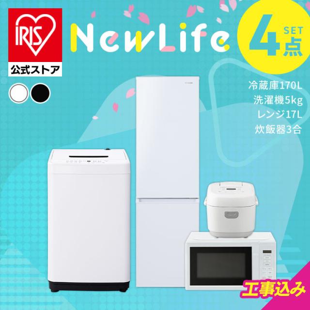 \設置サービス込み/ 家電セット 一人暮らし 4点セット 冷蔵庫 スリム 170L 洗濯機 縦型 5kg コンパクト 電子レンジ 炊飯器 アイリスオーヤマ 安心延長保証対象