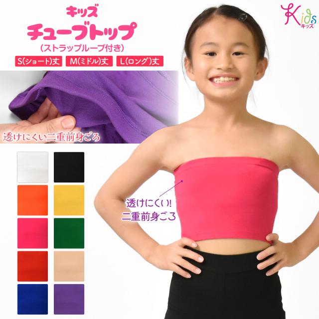 キッズ ベアトップ チューブトップ 前二重 ストラップループ付き T83555 ダンス インナー