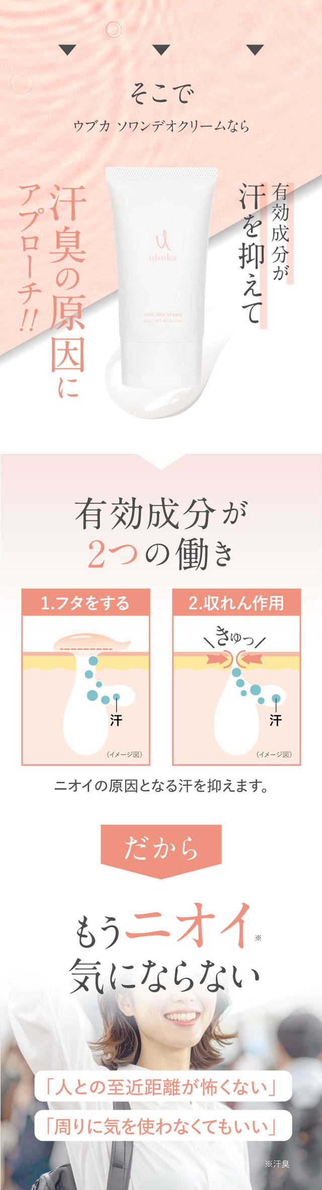 予約 医薬部外品 デオドラントクリーム わきが 汗 臭いを抑える エチケット 制汗剤 抑汗剤 ワキガ対策 デオドラント ワキガクリーム デリケートゾーン vio ニオイ 足 腋臭 脇汗 顔汗 体臭 足臭 フェムケア ウブカ ubuka ソワンデオクリーム 60g メール便 3/4以降 順次発送予定