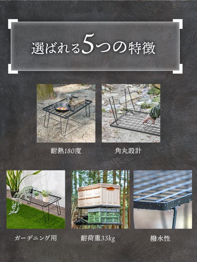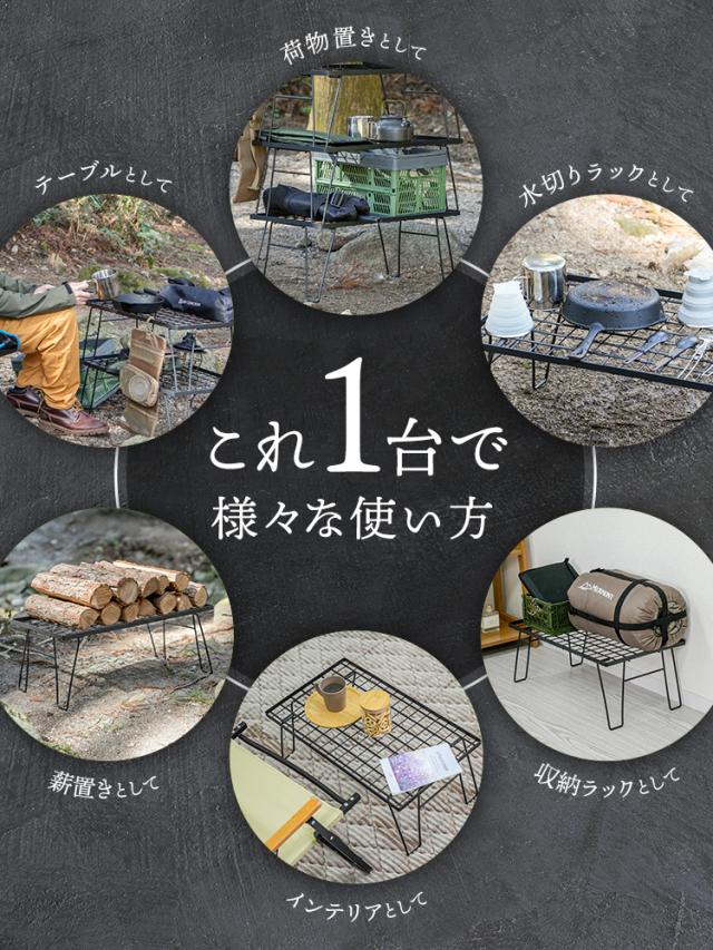 焚き火周りのギア置き、キャンピングラック、ガレージやガーデニング収納など