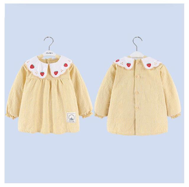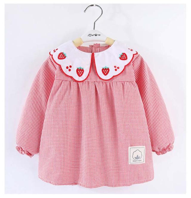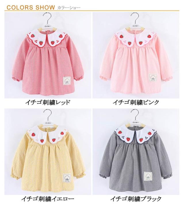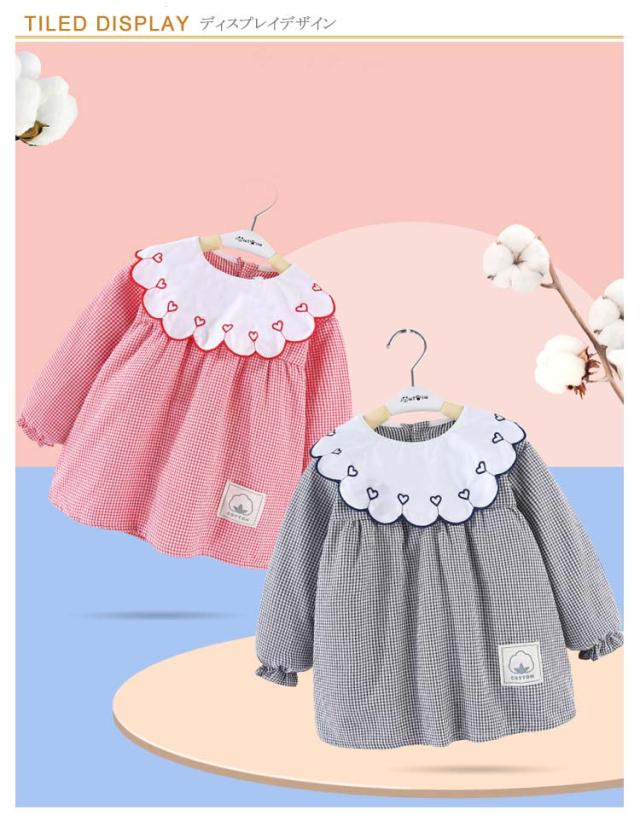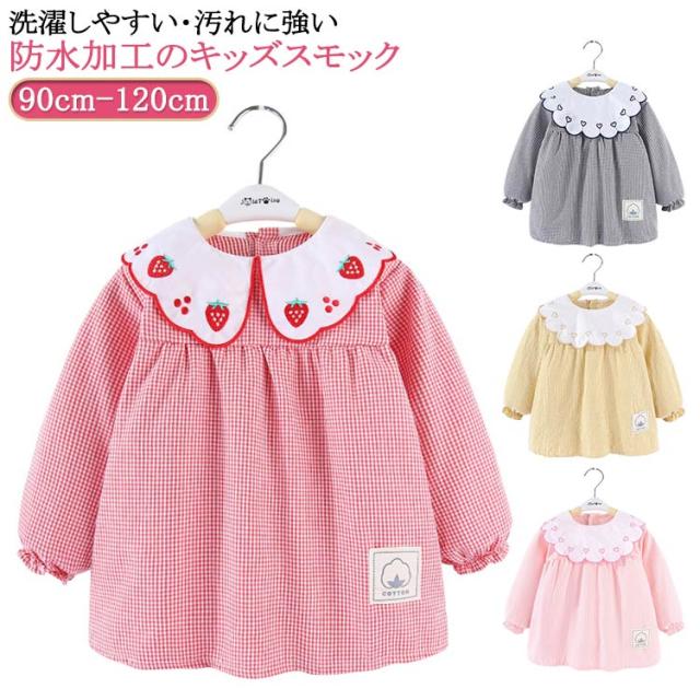 スモック 子供 女の子 ブラウス 長袖スモック イチゴ/ハート刺繍 お砂場着 砂遊び ベビースモック 可愛い チェック柄 お食事 エプロン 汚れ防止 絵画 外遊び 外遊び お食事 エプロン 保育園 幼稚園 赤ちゃん 幼児 防水エプロン 子供服 春 秋冬 ギフト 送料無料