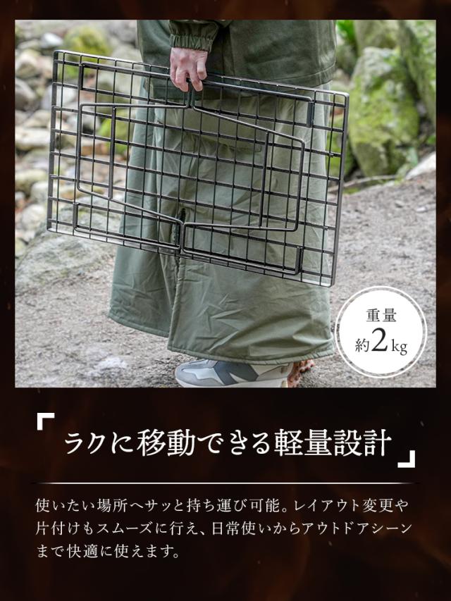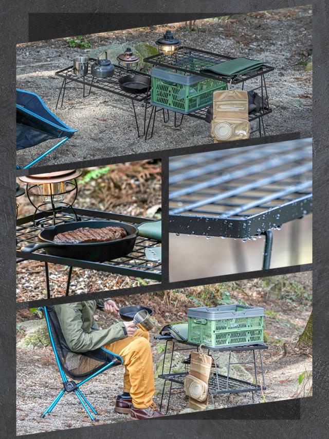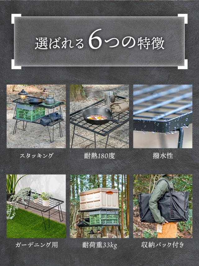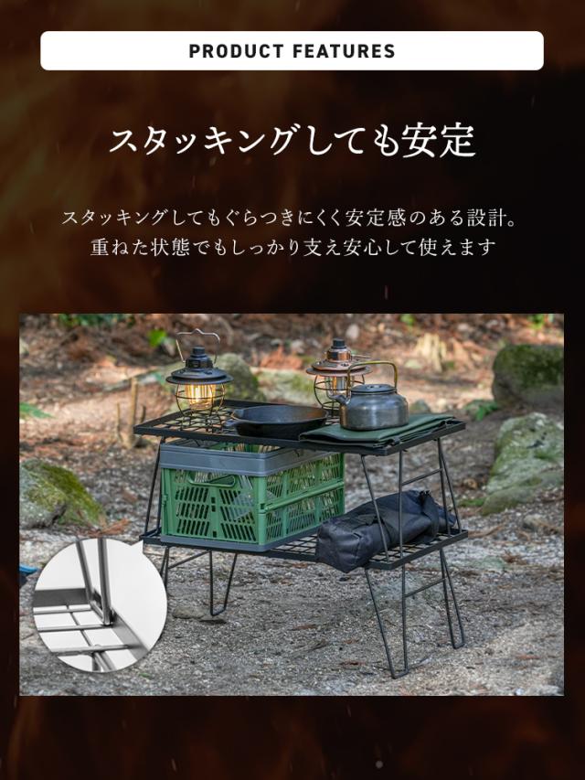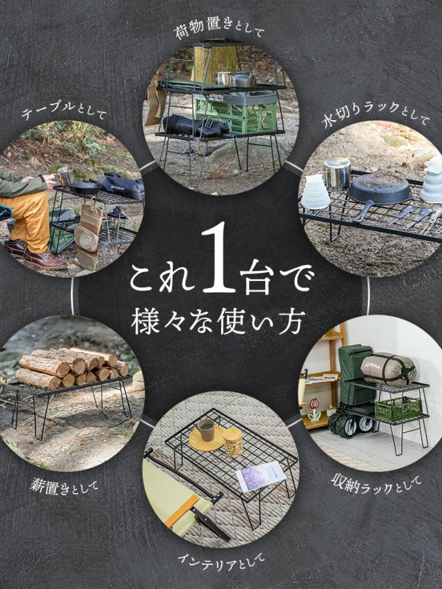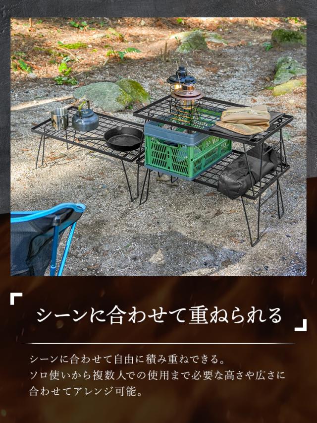 キャンプサイトの整理整頓や、焚き火周りのギア置きに活躍します。