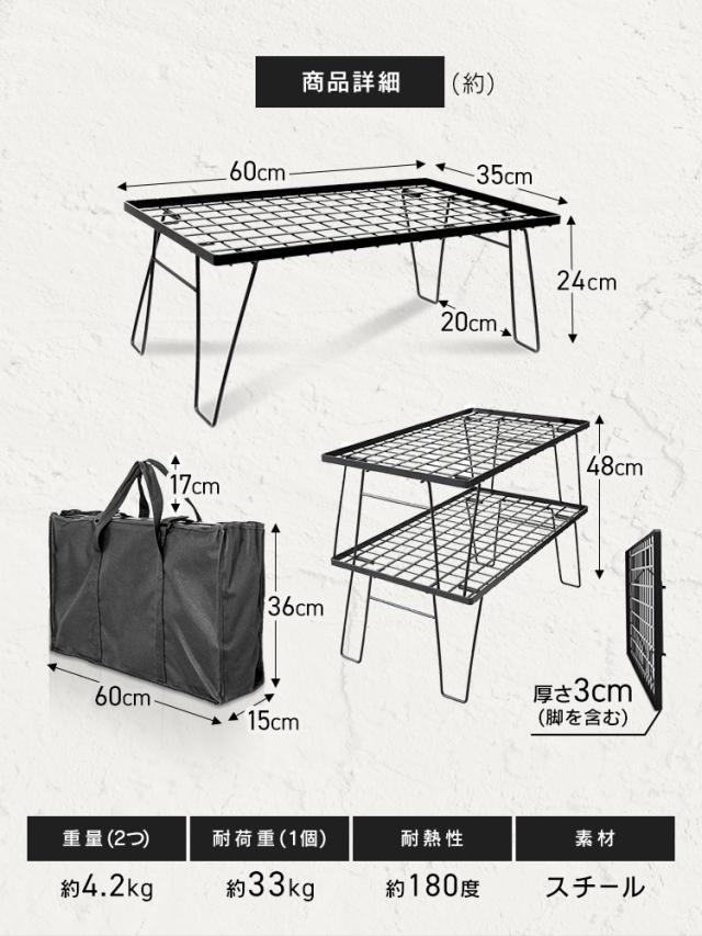 耐荷重約33kgの高耐久フィールドラック【2台セット】。