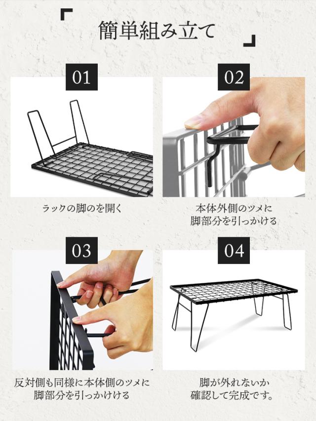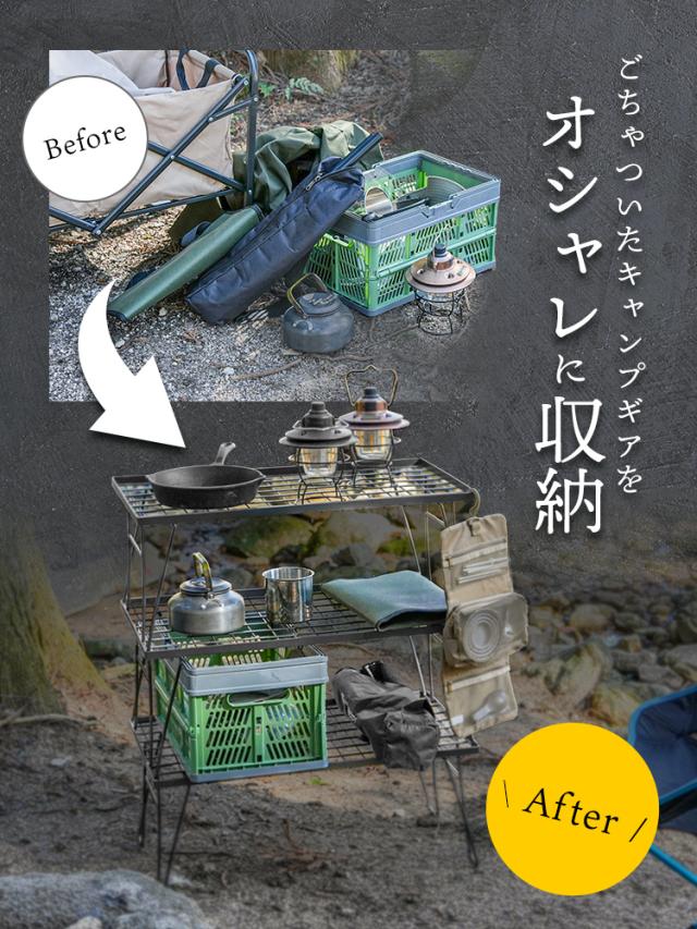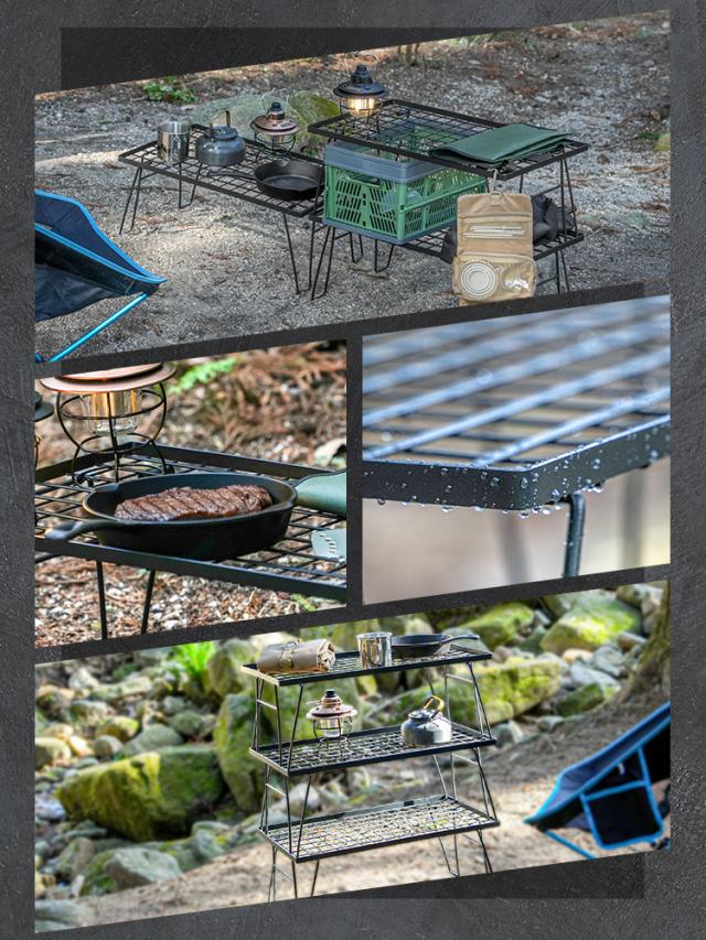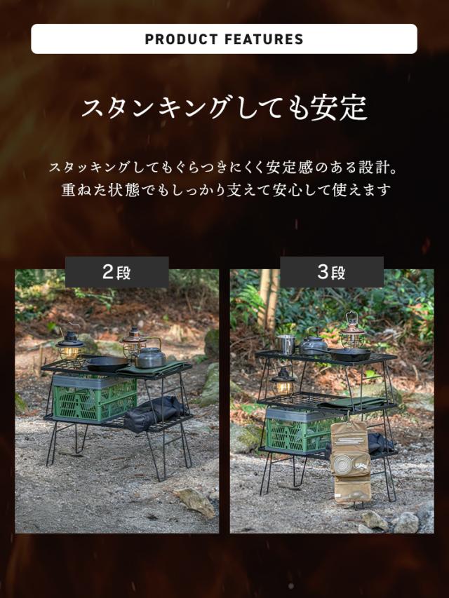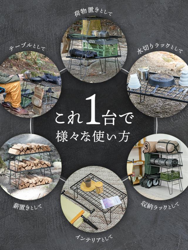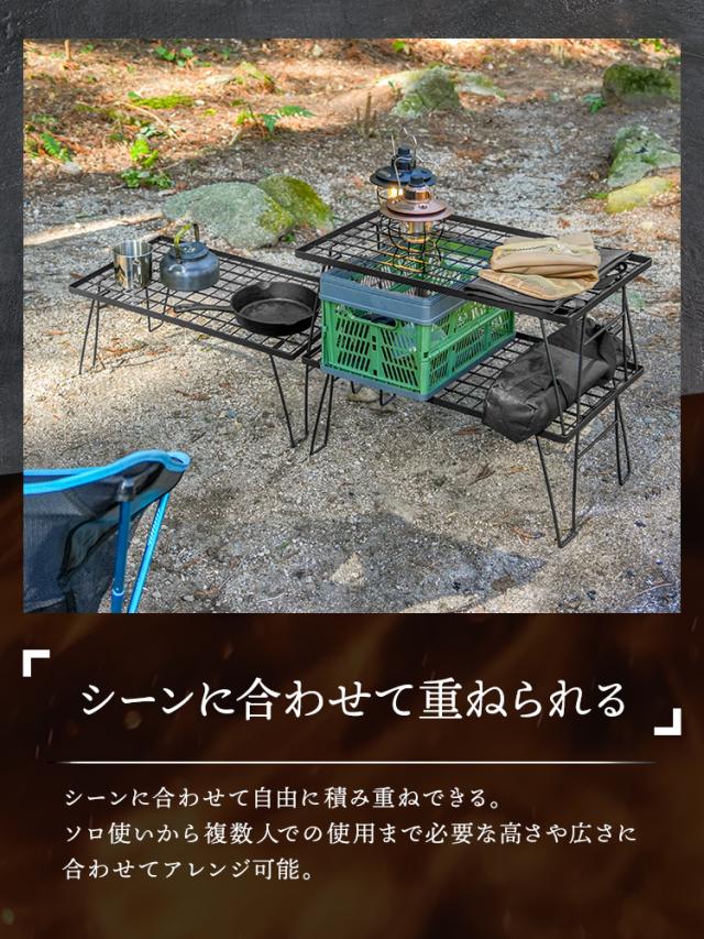 キャンプサイトの整理整頓や、焚き火周りのギア置きに活躍します。