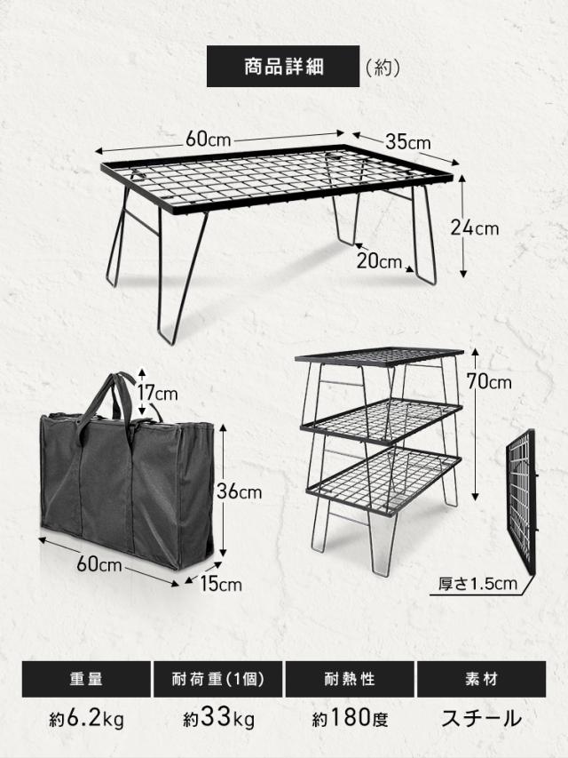 耐荷重約33kgの高耐久フィールドラック【3台セット】。