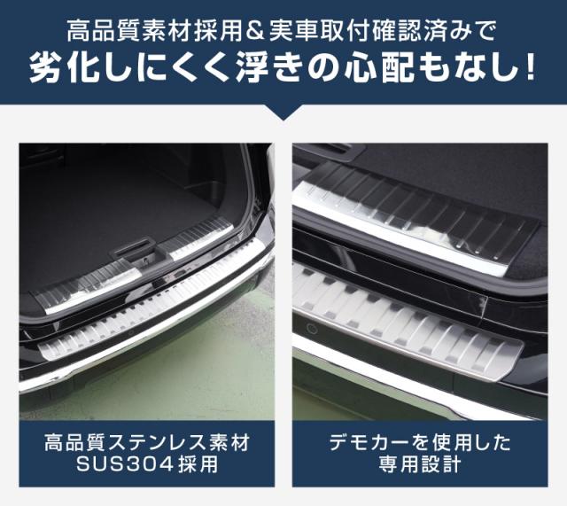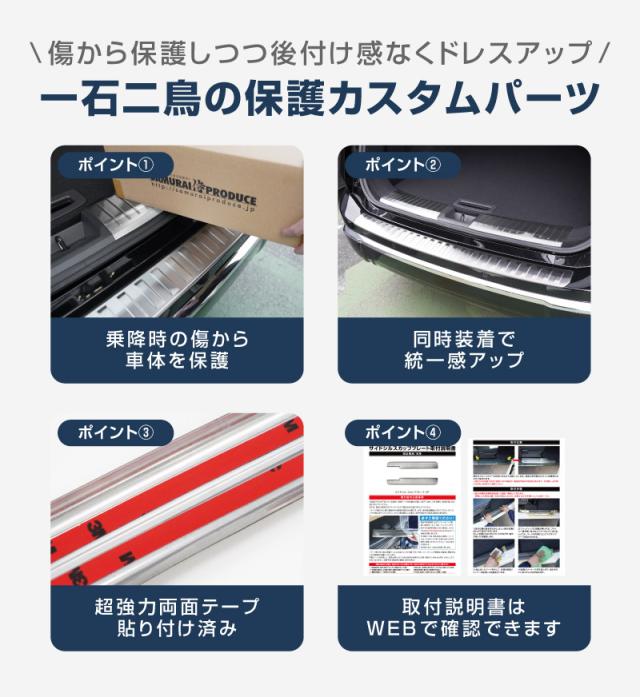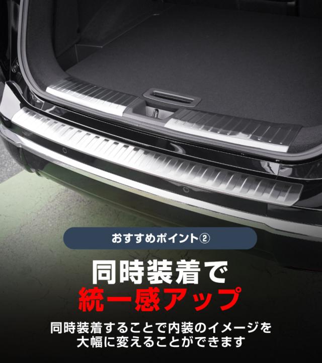 保護パーツでありながら後付け感のない洗練されたデザインで、ラゲッジまわりの印象を引き締め、インテリアとしてもスタイリッシュに演出します。