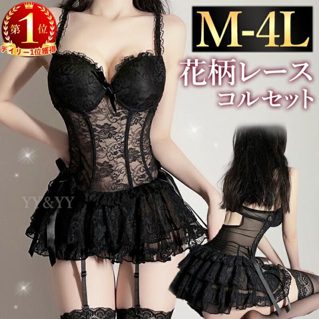 ビスチェ コルセット ランジェリー ガーターベルト 大人可愛いショーツ バスト盛れる 可愛い下着 可愛いコスプレ 過激 人気 可愛い服 可愛いコスプレ グラマーサイズ 黒 ミニ丈 3L 4L