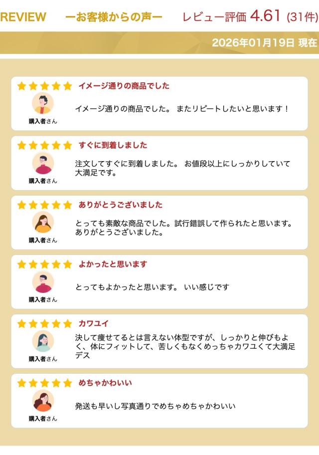 | ◇当店ではセクシーランジェリーやコスプレ衣装を豊富に取り揃えています。 個性を引き立てる魅力的なデザインと、質の高い素材を使用した商品をリーズナブルな価格でご提供。 特別な日やイベントにぴったりなコスプレ衣装はもちろん、普段使いできるセクシーランジェリーもご用意しています。 大人の魅力を引き出すアイテムを見つけて、特別な瞬間を演出してください。 ◇レディースファッションアイテムも取り扱っています。 デザイン、シルエット、素材にこだわったアイテムをお手頃価格でお届け。忙しい毎日でもおしゃれを楽しみたい方にぴったりなアイテムを提供しています。 シンプルなブラウス、流行のミニスカート、上品なミモレスカート、カジュアルなロングパンツやショートパンツ、洗練されたワンピース…など、多彩なアイテムが盛りだくさん! ぜひ当店のラインナップをご覧ください |
