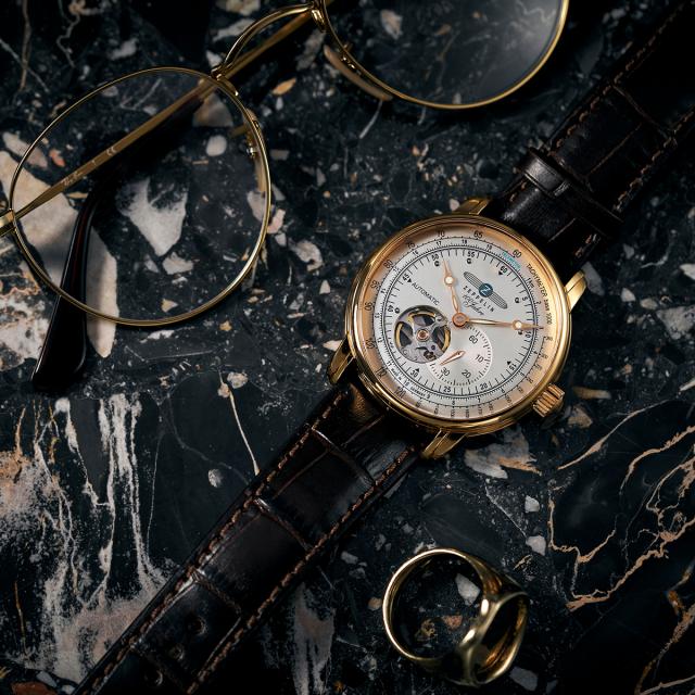 ドイツの飛行船の歴史とロマンを受け継ぐツェッペリンから、100周年記念シリーズの定番モデル「オープンハート・オートマティック」に、ゴールドケースを纏った日本限定モデルが登場です。
