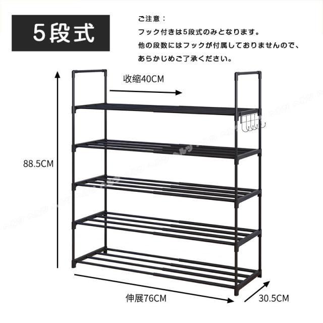 「即納」伸縮 シューズラック 3段 5段 8段 幅43-76cm調整可能 靴収納 下駄箱 玄関収納 フック付き 靴収納棚 スリム 省スペース 簡単組立 一人暮らし 伸縮式 新生活