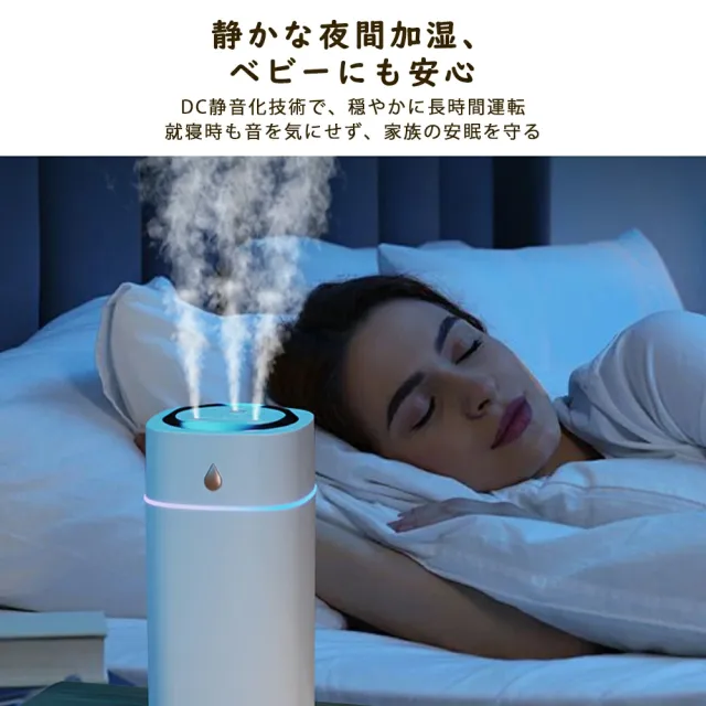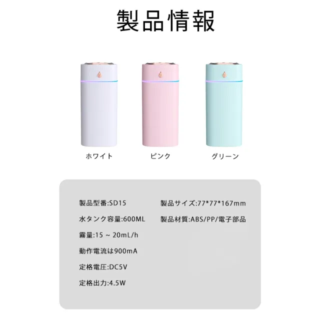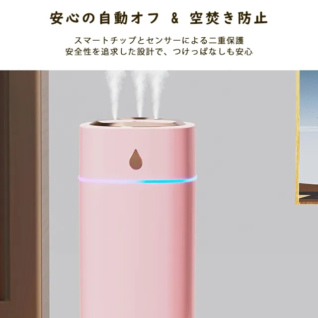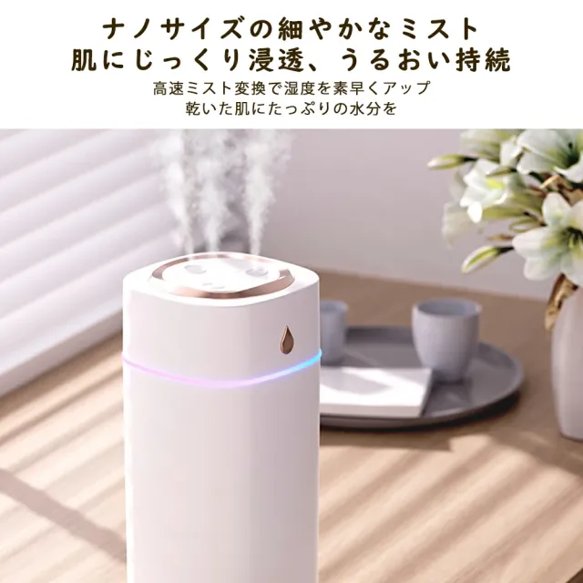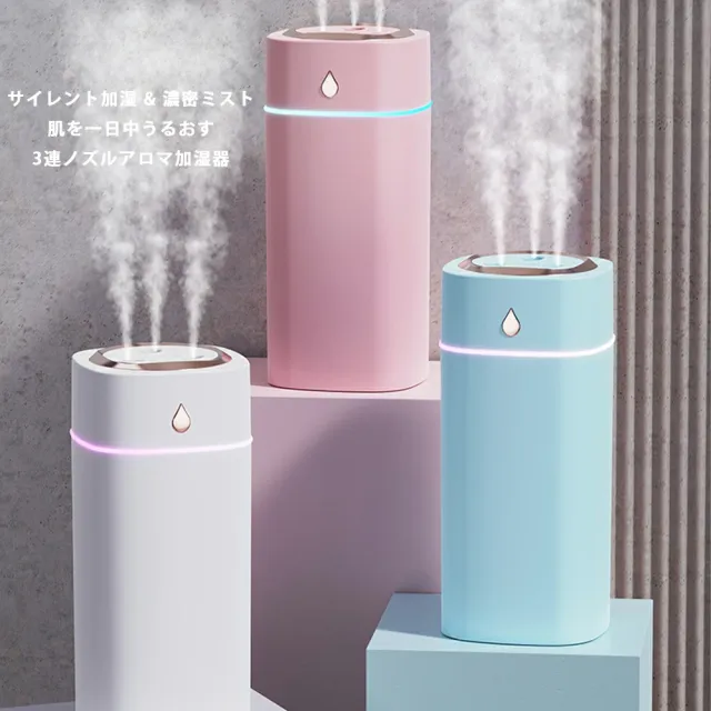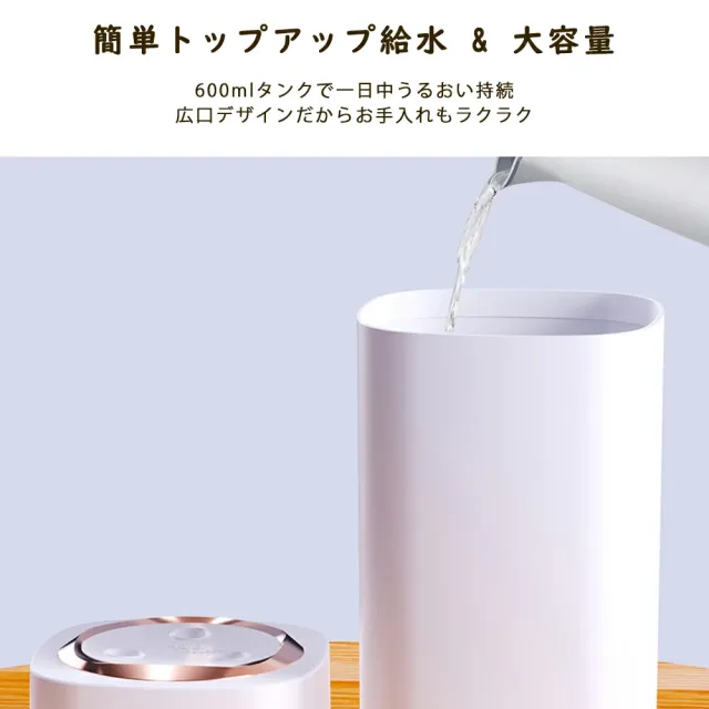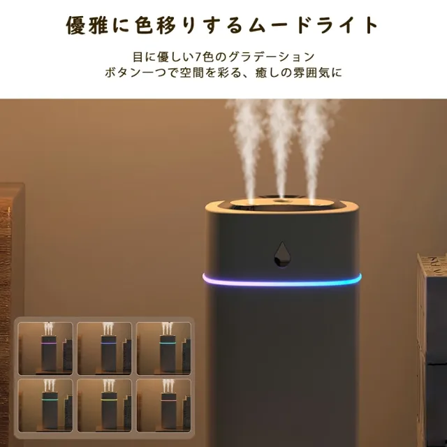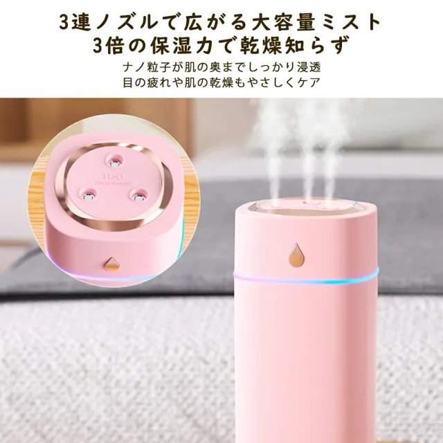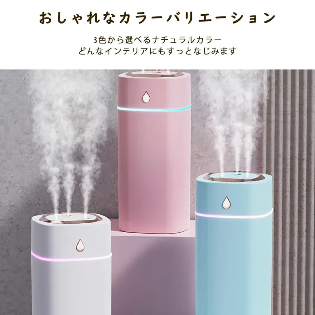 加湿器 小型 加湿機 超静音 軽量 空気清浄 お手入れ簡単 卓上 おしゃれ オフィス 大容量 静音 上部給水 上から給水 強力加湿 保湿 節電 乾燥 花粉 ウィルス対策 オフィス 寝室 子供部屋 省エネ エコ かわいい タンク容量 7色LEDライト トリプルミスト 空焚き防止 600mL