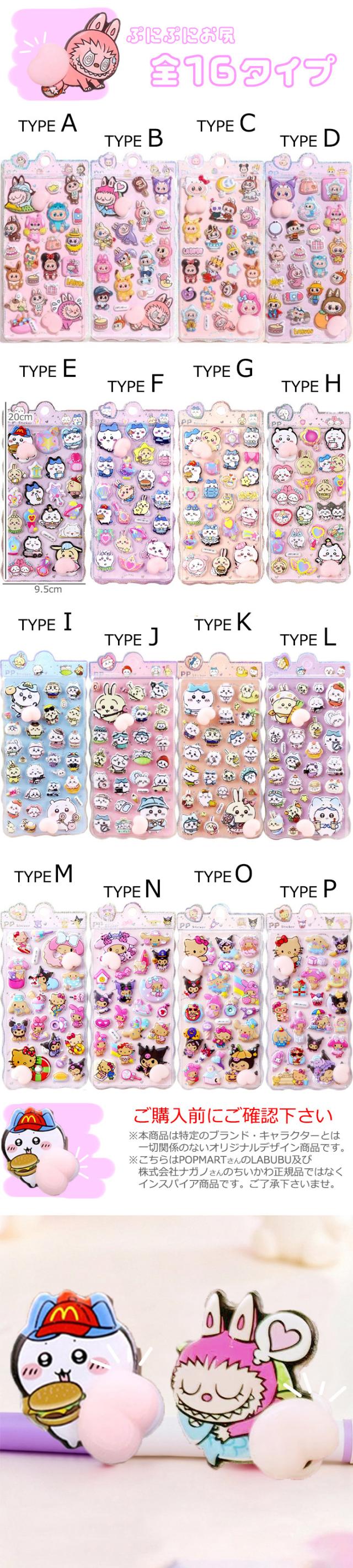ボンボンドロップ 3D立体シール お尻シール 選べる16種類 おしり ラブブ ちいかわ ぷにぷに ぷくぷく 可愛い 立体シール ボンドロップ ハローキティ キティ マイメロディ マイメロ クロミ 装飾 DIY用 3Dシール 手帳 ステッカー スマホケース 手芸用品 ステッカー プレゼント