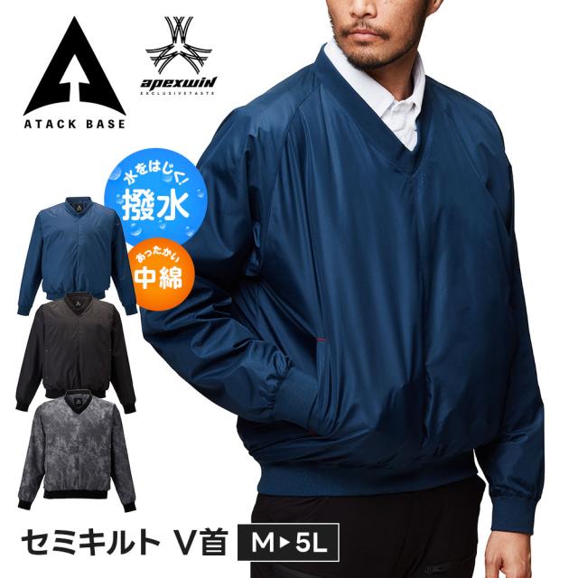 アタックベース 作業服 防寒 ミドルレイヤー メンズ 大きいサイズ インナー 長袖 作業着 防寒着 vネック tシャツ キルティング キルト 中綿 軽量 暖かい ワークウェア ビジネス スーツ下 釣り アウトドア キャンプ ゴルフ 散歩 重ね着 インナーウェア 秋冬 冬 v首 6791