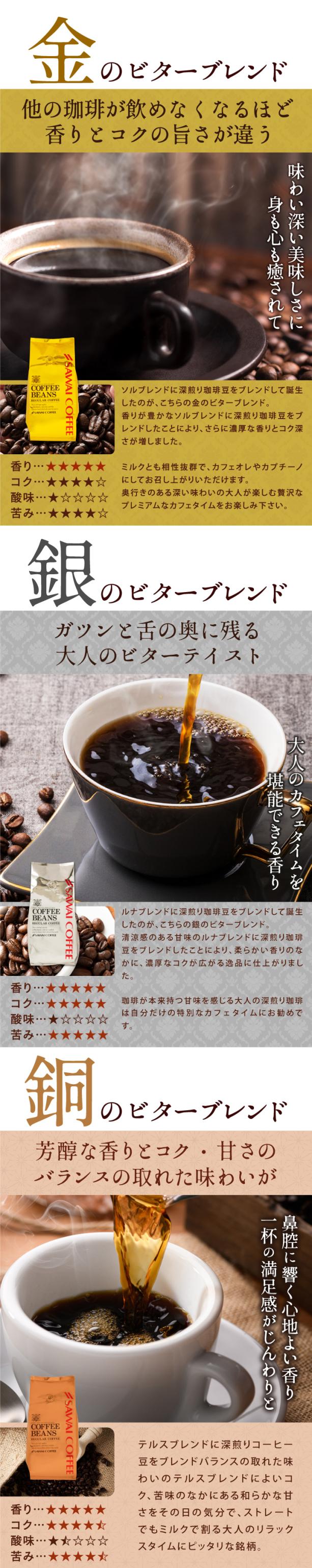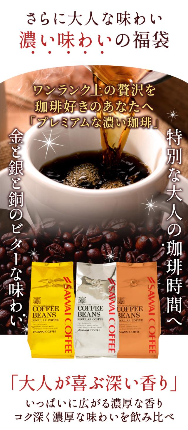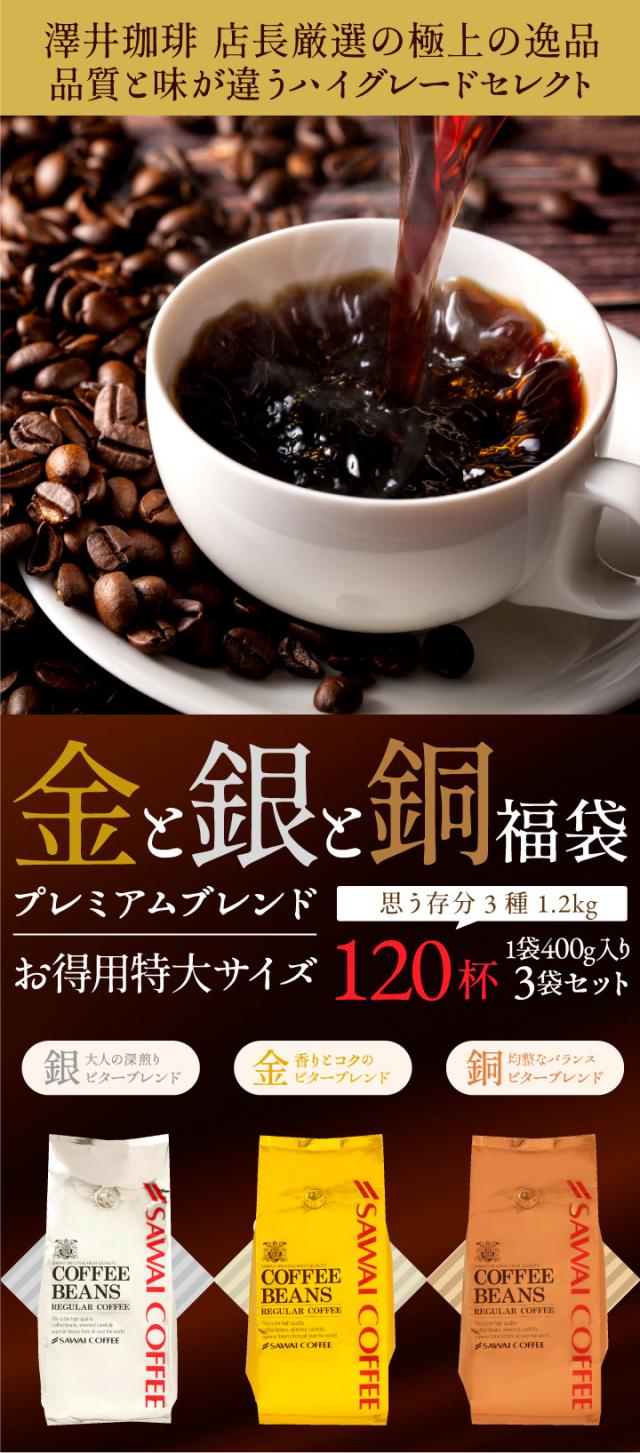 送料無料 コーヒー コーヒー豆 コーヒー粉 珈琲豆 豆のまま "コク深く香る贅沢珈琲" 澤井珈琲 金 銀 銅 のビターブレンド 飲み比べ 福袋 400g×3袋 濃い味 ビター コク深い 香り高い 大容量