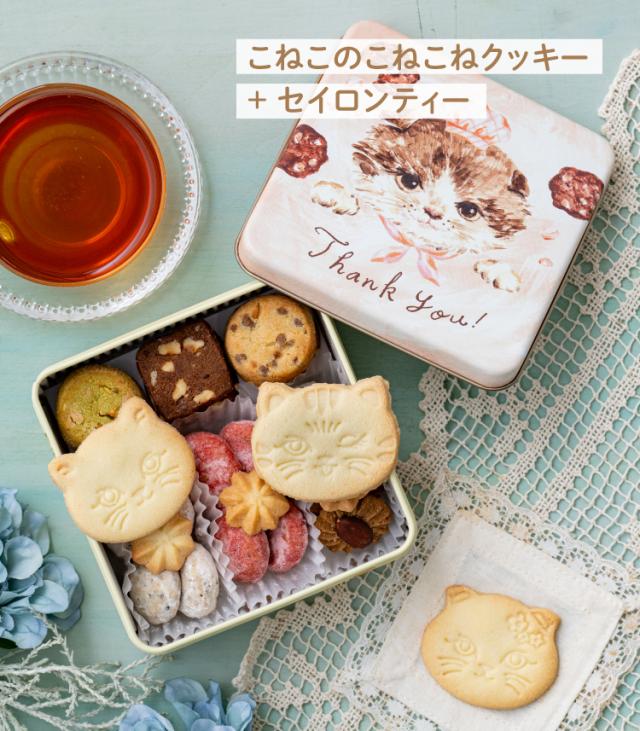 こねこのこねこねクッキー+セイロンティー ギフトセット クッキー 詰め合わせ ギフト バレンタイン 母の日 缶入り 猫 ねこ ネコ 猫グッズ 猫缶 ギフト スイーツ 紅茶 ティーバッグ お菓子 洋菓子 お取り寄せ プレゼント 贈り物 贈答品 誕生日 ティーライフ