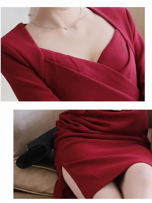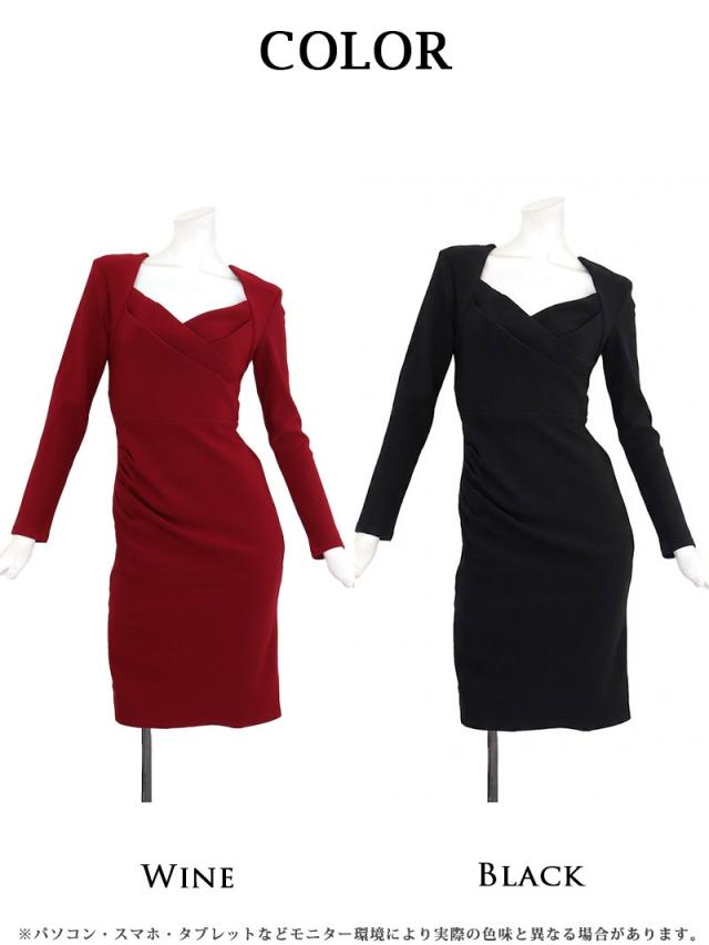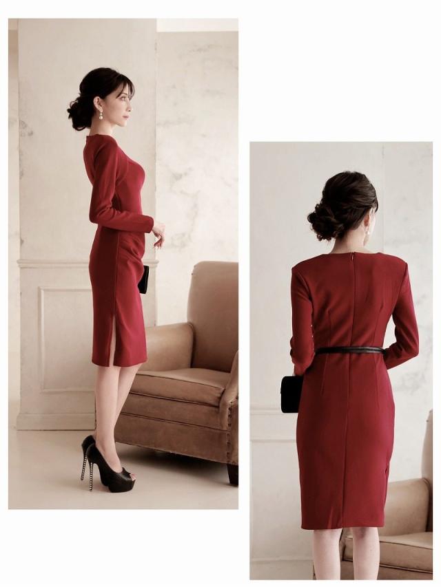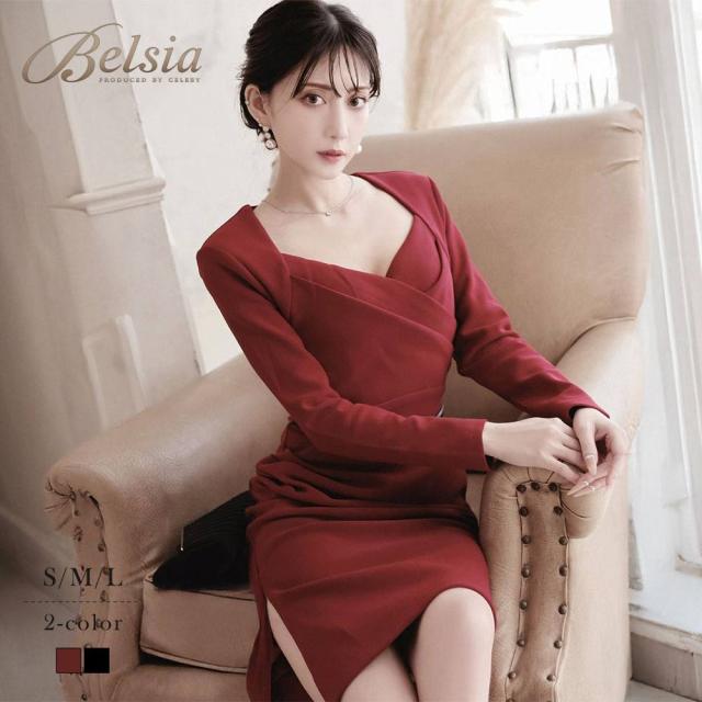 キャバワンピース Belsia お呼ばれワンピース フォーマルワンピース 袖付き 長袖 膝丈 キャバ ワンピース ワンピ キャ