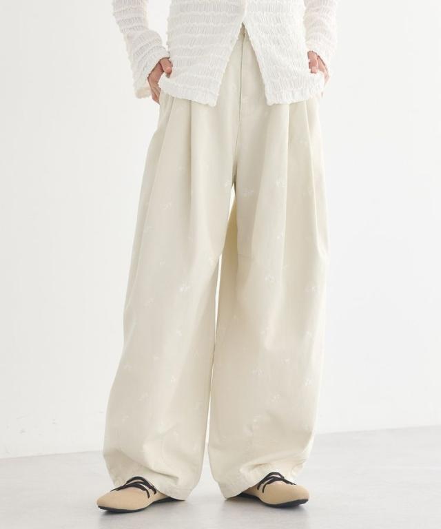 アースミュージック&エコロジー(earth music&ecology)/フラワー刺繍ツイルカーブパンツ