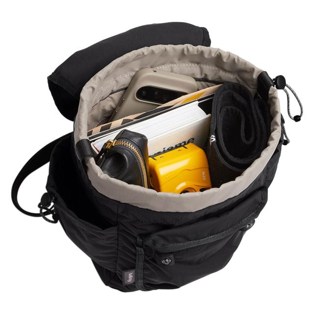 ベルロイのシンチミニパックは、レトロなデイパックにインスパイアされた軽量かつ機能的なミニリュックです。片手で素早く開閉できるドローストリング仕様により、荷物の出し入れが驚くほどスムーズに行えます。メインコンパートメントには貴重品を守るスナップ付きフラップを装備し、内部にはApple AirTag専用ポケットなど現代的な機能を備えています。100%リサイクル素材を使用した耐久性のある撥水生地を採用しており、日常の外出からフェス、旅行のサブバッグまで、環境に配慮しながらアクティブに活躍するバッグです。