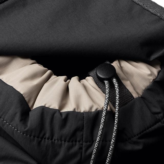 外側:スナップ付きフロントポケット×1 外部ドローコード付きポップポケット×2 キークリップ