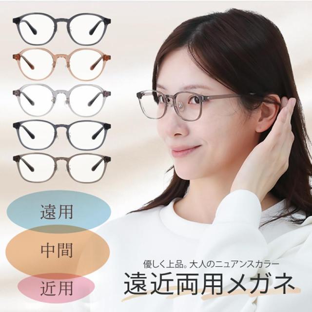 遠近両用メガネ レディース 度付き 軽い おしゃれ かわいい メガネ 遠近 遠くも近くも見えるメガネ 遠近メガネ 掛け外し不要 乱視 遠用 近用