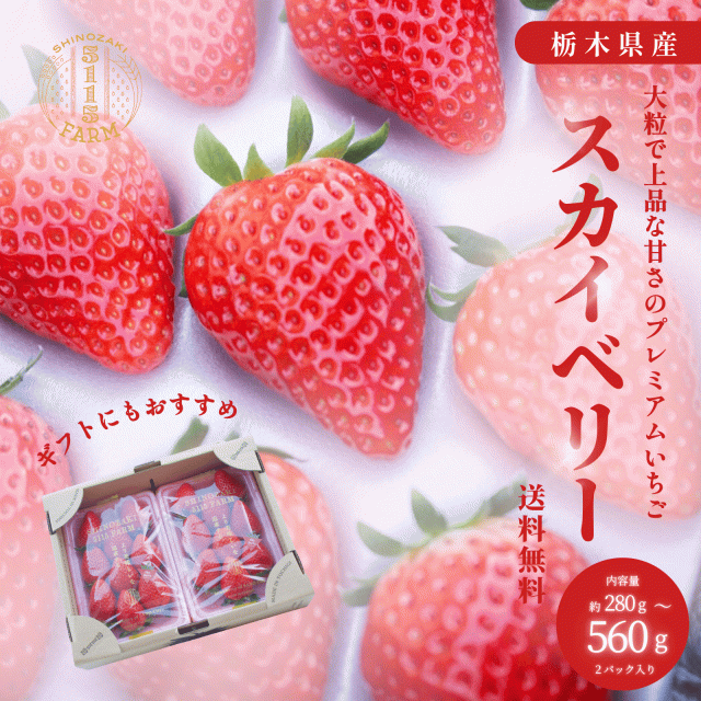 栃木県産 スカイベリー 約280g×2パック 合計約560g イチゴ 苺 送料無料 オリジナルパック&箱入り 冷蔵便 5115FARM JA佐野