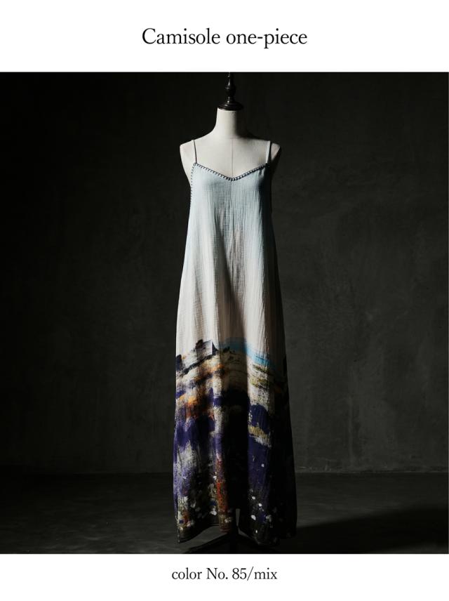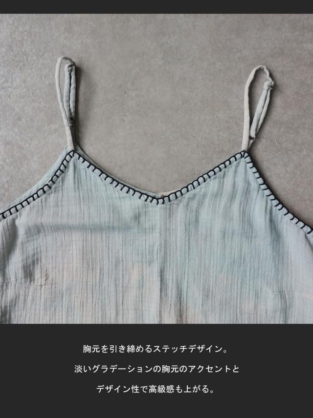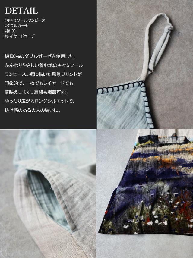 綿100%(コットン)ダブルガーゼ素材を使用した、柔らかく軽やかな着心地のキャミワンピ(ワンピース・ロングワンピ)です。