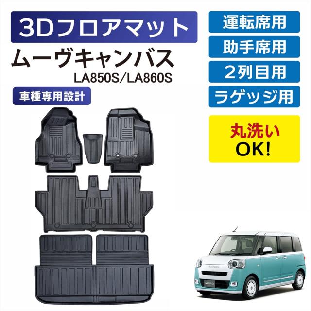 ムーヴ キャンバス 専用 3Dフロアマット 車種専用 運転席 助手席 後部座席 1列目 2列目 ラゲッジ セット 立体 マット 車種専用設計 ズレ防止 泥 砂 水 防汚 汚れ防止 防水 水洗いOK カーマット LA850S LA860S 車 専用マット ダイハツ DAIHATSU CANBUS
