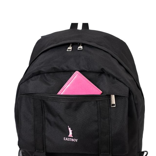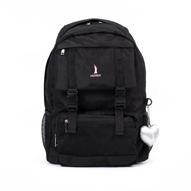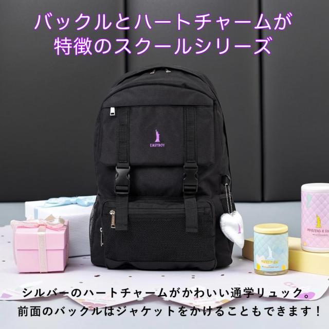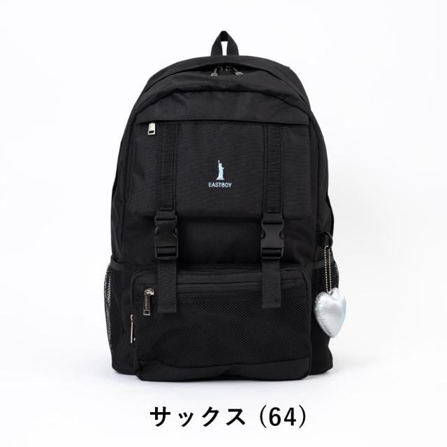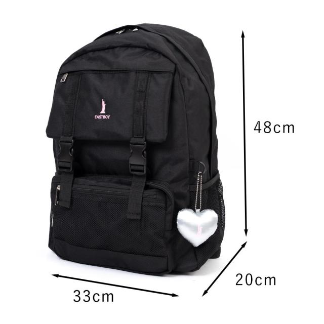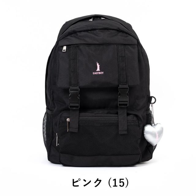 女の子に大人気ブランド、イーストボーイのデイパック!ブランドロゴの刺繍とシルバーハートのぬいぐるみチャームがポイントです♪