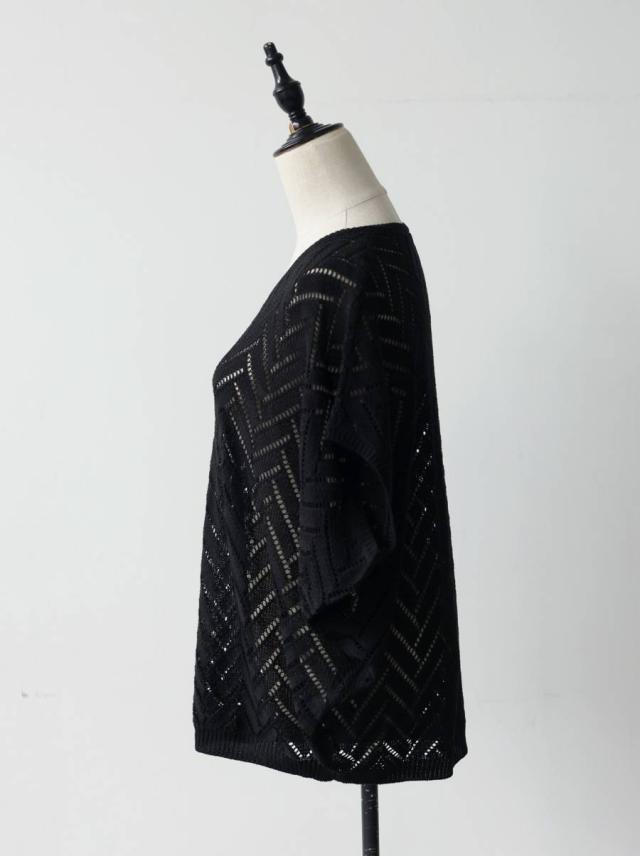 ニット レディース 半袖 Vネック 透かし編み 網代柄 送料無料 ・メール便不可 春新作