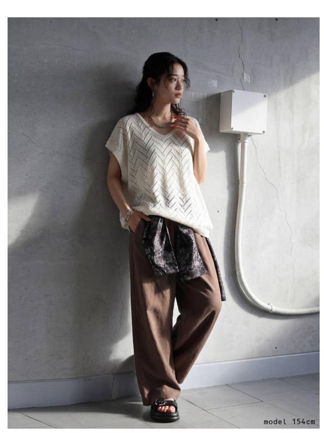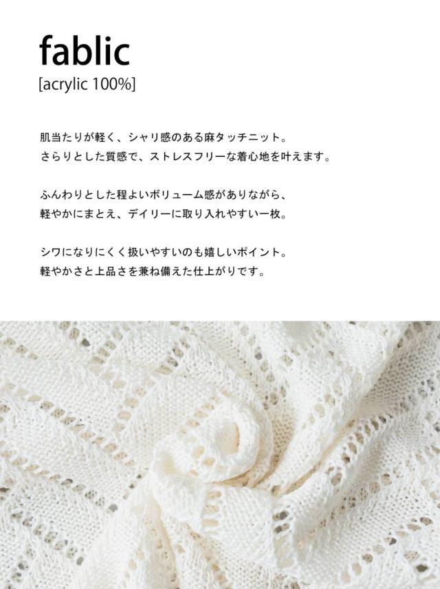 軽やかな編地で通気性が良く、春夏シーズンに快適に着用できます。