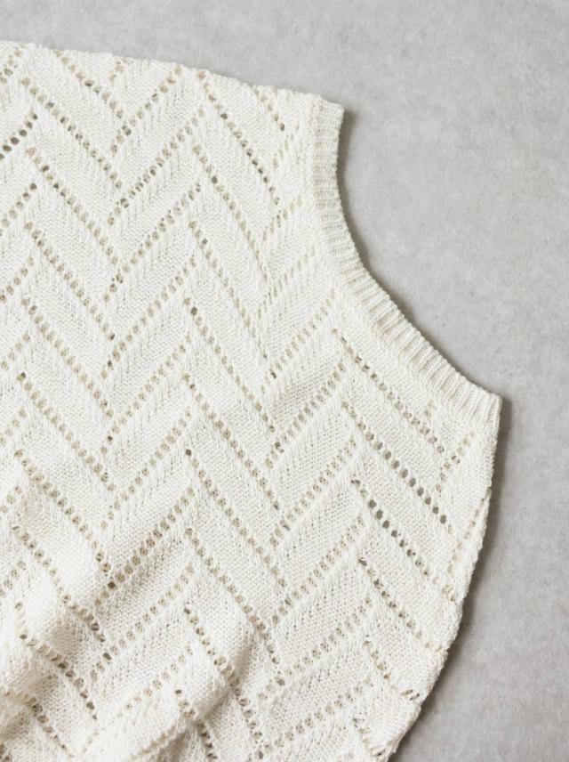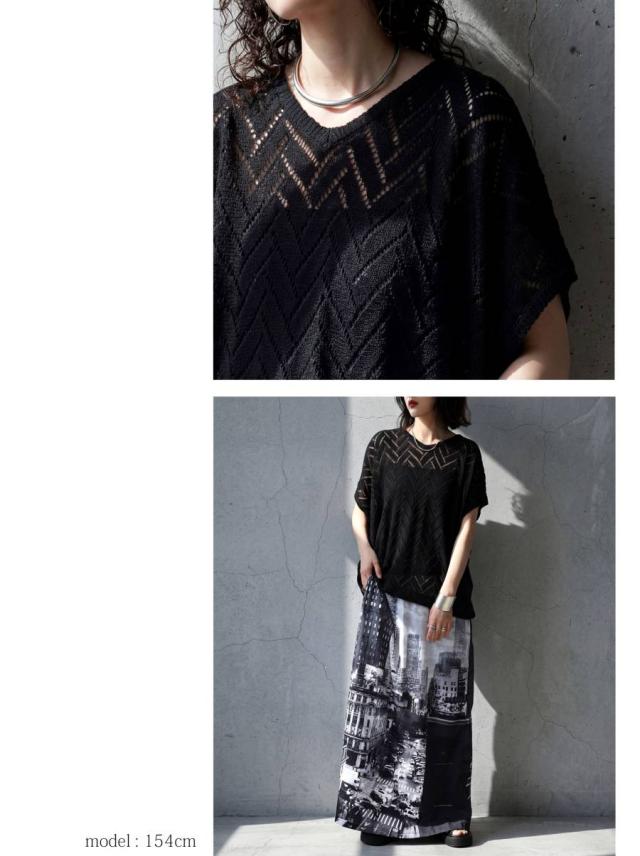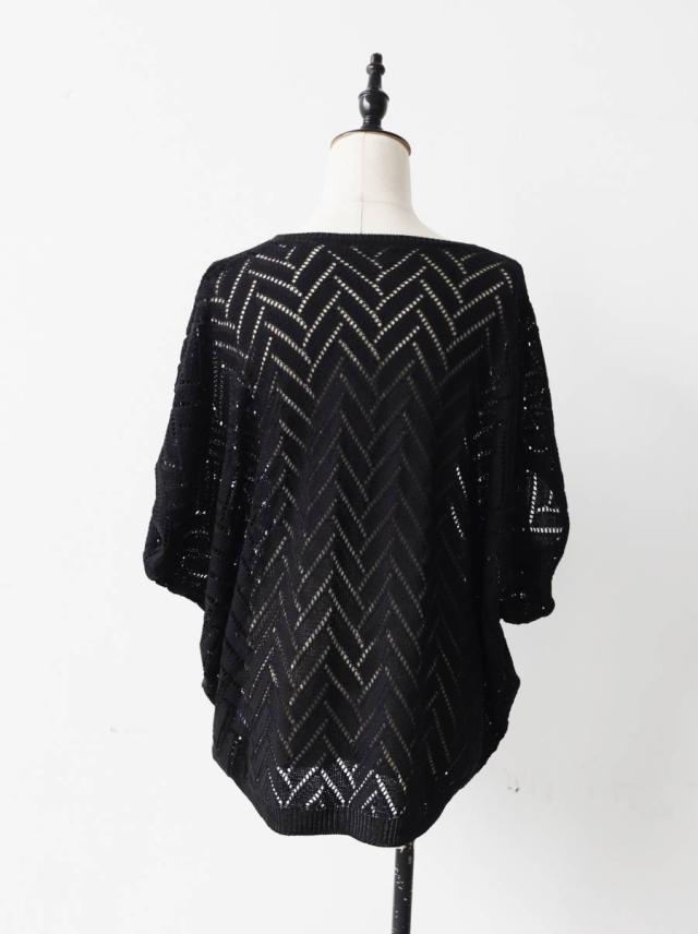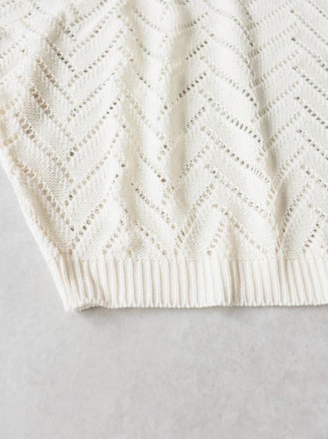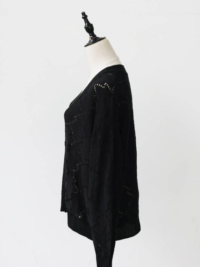 繊細な透かし編みの柄が印象的なニットトップス(セーター)です。