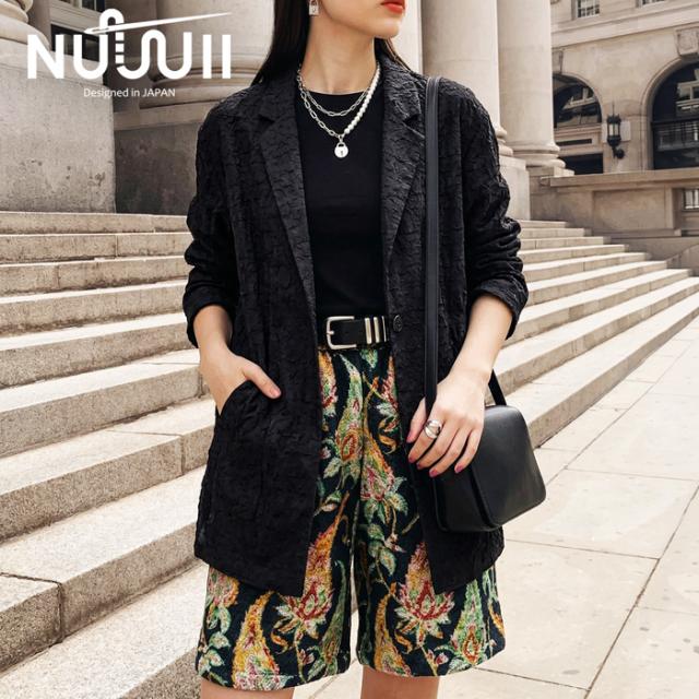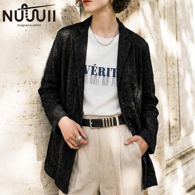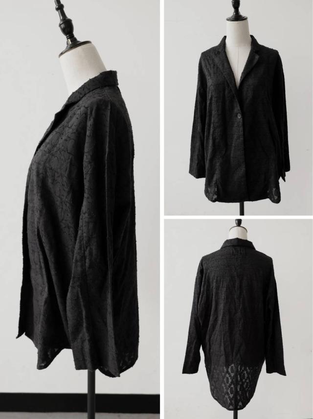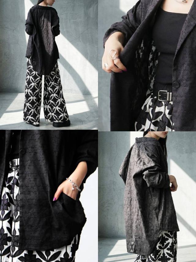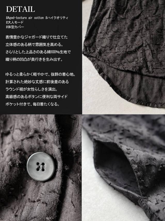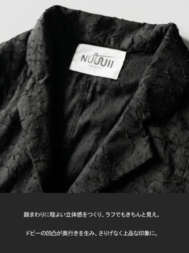 nui-00049 羽織り ボタン ドビー織り 柄 テーラード シャツジャケット コットン 綿 きれいめ 上品 リゾート 大人カジュアル ゆったり 体型カバー ワンマイル レイヤード ジャケット