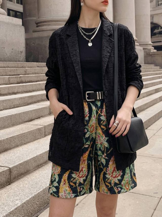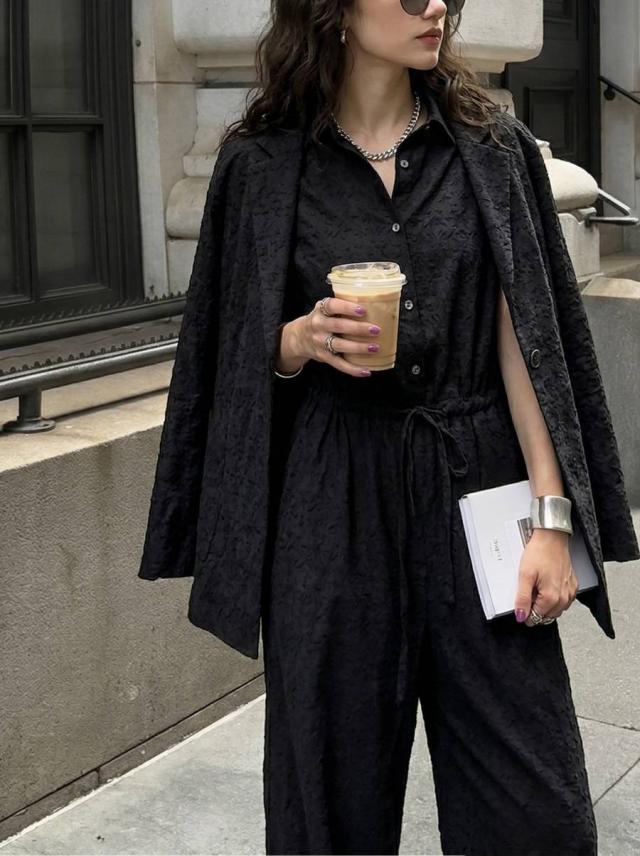 ネックラインは程よく開いたテーラード仕様で顔周りをすっきりと見せます。
