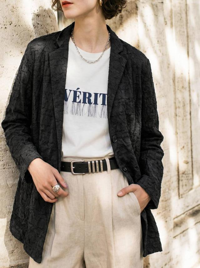 凹凸感のあるドビー織りが印象的なテーラードジャケットです。